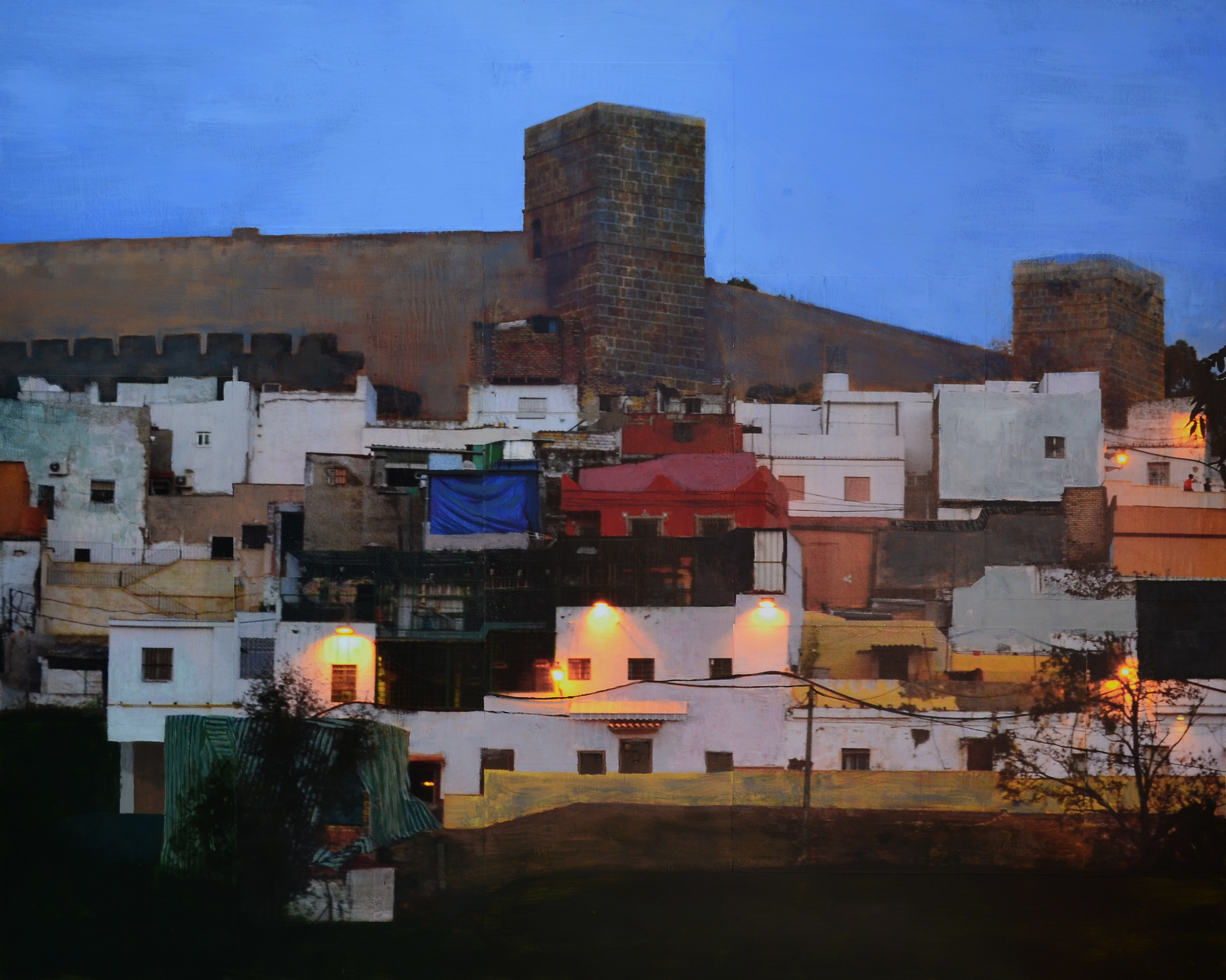 "Night in the neighborhood". Mixed interpretation, photography and acrylic painting. 80x100 cm.